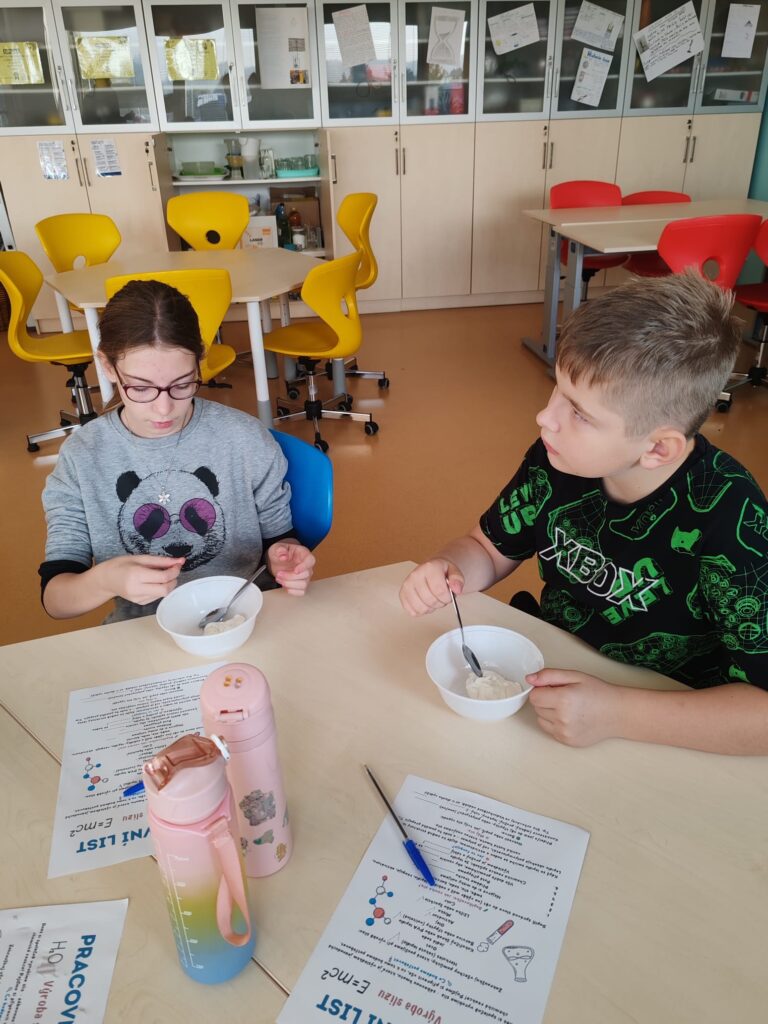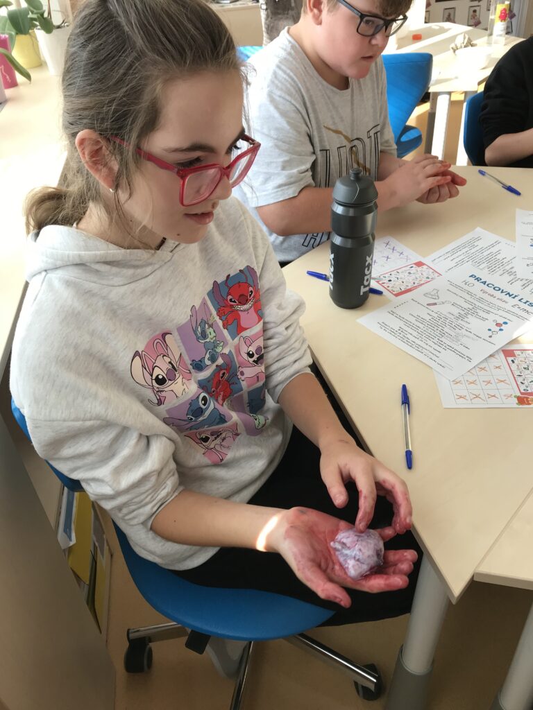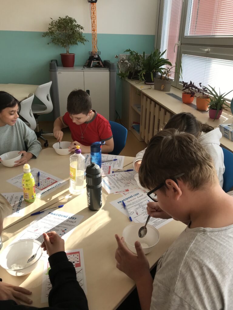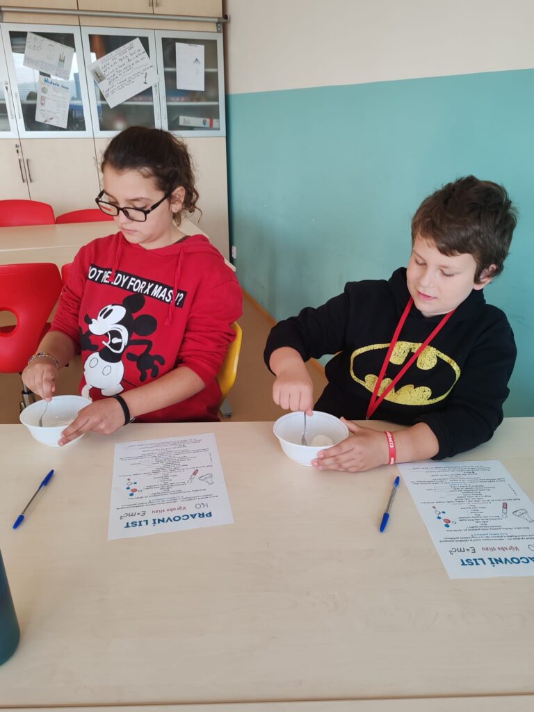 Třída 5. B odstartovala zábavné dopoledne v SVČ akcí hokus-pokus. Žáci si pod vedením vyrobili barevný sliz. Pomocí pracovního listu si celou výrobu slizu zrekapitulovali.