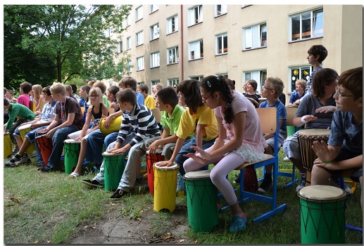 S touto technikou se naši žáci poprvé seznámili v červnu 2012. Naši školu navštívili 3 charizmatičtí bubeníci z Prahy, pod jejichž vedením jsme se s dětmi jako tým naladili na jednu „vlnu“ a vytvořili rytmický orchestr pod širým nebem. Naše malé společenské prostory nám neumožnily kvalitní zážitek a prožitek, proto jsme se přestěhovali před školu. Žáci nadšeně nosili židle a vytvářeli orchestřiště, aby velká zábava mohla vypuknout.