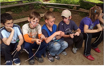 Po takto náročném dnu si u ohně poslechly indiánskou píseň, shlédly indiánskou hru a opekly si buřta na indiánském ohništi.