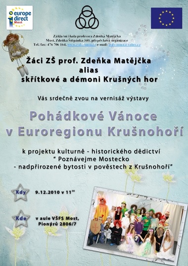 Každá třída průběžně tvořila výtvarná díla s nadpřirozenými bytostmi a doplnila je literární charakteristikou vybrané postavy. Tuto část projektu završila vernisáž výstavy Pohádkové Vánoce v Euroregionu Krušnohoří, která se konala ve spolupráci s Europe Direct Most v aule VŠFS. Zde strašidla ožila znovu. Celým programem diváky provázel Rýbercoul, který si postupně zval ostatní nadpřirozené bytosti a seznamoval s nimi přítomné diváky. Bytosti recitovaly, zpívaly, tančily a hrály divadlo. Představila se Marcebilla, domácí skřítkové, čarodějnice Vela, Krásný muž, Ohnivec, vodní víla, vodník, permoníci, hejkal Hejma, čert z Resslu.