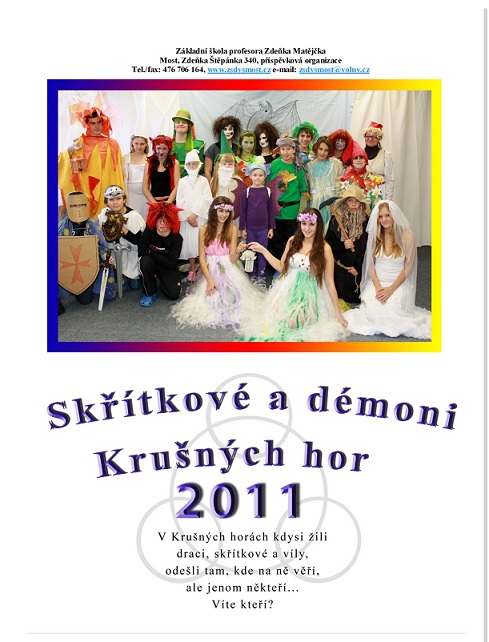 Žáci ZŠ prof. Zdeňka Matějčka pokračují v projektech výchovy ke vztahu ke kulturně-historickému dědictví. Po úspěšném dokončení projektu „Poznávejme Mostecko“ v loňském roce se ze žáků - průvodců Mosteckem stali skřítkové a démoni Krušných hor. Inspirovali se nadpřirozenými bytostmi, o kterých se dočetli v pověstech z Krušnohoří.