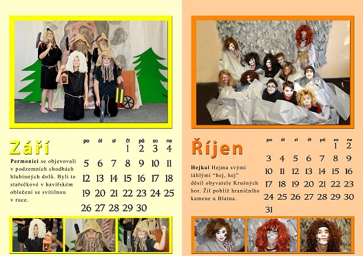 Žáci si nejprve o strašidlech přečetli pověsti. Z nich si potom vybrali postavy, které výtvarně ztvárňovali. Do výroby kostýmů se zapojili nejen žáci a paní učitelky, ale i rodiče. Jejich tvořivost a kreativita se vyplatila, protože skřítkové a démoni následně v rámci projektového dne nafotili kalendář a současně procházeli stanovišti skřítků, kde pro ně byly nachystány různé úkoly – např. rozeznávání chutí se zavázanýma očima, skládání puzzle, hod na skřítka, atd.