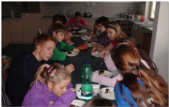 Vždy večer nás čeká stezka večerní školou, kde každý musí ukázat svou odvahu Naším hlavním večerním úkolem, je příprava jídelníčku na druhý den. Seznámíme se s kulturou a hygienou stolování. Naučíme se připravit si snídani. Uvaříme si oběd, který vždy společně u jednoho prostřeného stolu sníme.